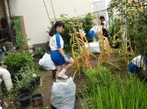 前回7月25日の除草作業から早4週間がたちました。夏の植物の成長はかなり早いです。バラ園のバラをおおいかくすように伸びているつる状の植物や、メロン畑のメロンが見えなくなるほど伸びた草。また、たった1つの捨ててあったサツマイモから伸びていた、地面をおおいかくすような芋の葉・つる。通路をふさいでしまったイチジクとアジサイなど、かなりとりごたえのある作業でした。草は、大きなビニール袋6〜7袋。お疲れ様。