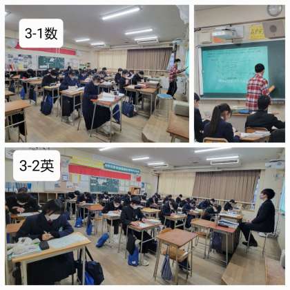 本日は朝から冷たい雨が降りつづいていましたが、皆さんは元気に授業を受けています。3年生は受験対策、1,2年生は学年末テスト対策をしっかり頑張りましょう。