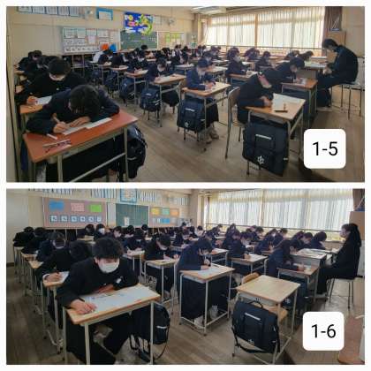 本日から3月となり、春の陽気に包まれた暖かい日となりました。1,2年生は、今日から3日間、学年末テストです。学年最後のテストとなりますので、進級の準備に向けてしっかり頑張ってください。