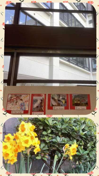 桃の節句は、空気が凛と張り詰めた朝を迎えました。1・2年生は学年末テスト最終日、3年生は、公立高校一般選抜への出願です。工事も遅れたものの引き継ぎまでカウントダウンになりました。バックネットや体育倉庫も完成です。グランド脇には、黄色の鮮やかなスイセンの花が綺麗に咲いています。