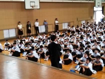 夏休み中には、このことをしっかり守って過ごしたことで、始業式には、皆さんが元気で登校できているのです。夏休みの最後になって、非常に悲惨な事件が起こりました。もう一度改めてみんなに伝えておきたいことは、子どもたちのかけがえのない命、健康と安全を守っていくのが大人の役割です。しかし、今回のように大人が尊い命を奪うという許すことのできない事件が起こっています。先生方や保護者の方々が、日頃から皆さんの生活面や学習面をはじめ、いろいろな場面で注意をしたり、ルールを守ることの大切さについて話されています。それは、皆さんを守り、健全に成長していってほしいという思いからです。しかし、皆さんも守られるだけでなく、自分でも危険を察知し、それを避ける力を身に着けてほしいと思います。自分の健康と安全は自分で守り抜く!をこれからも意識して行動してください。