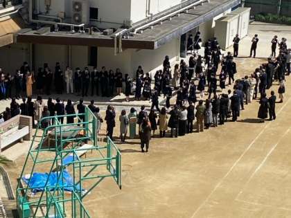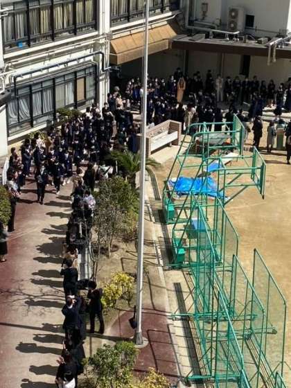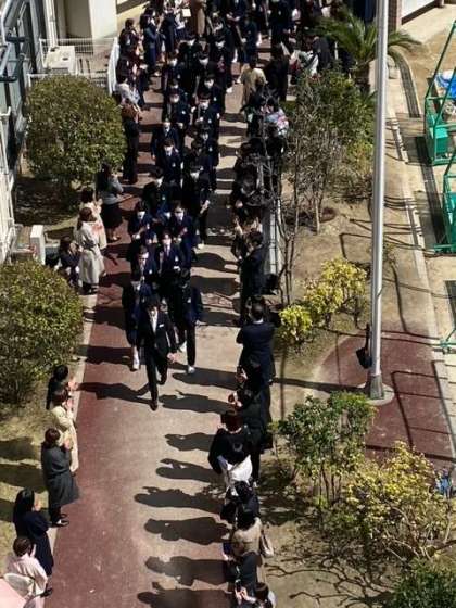 吹奏楽部の演奏で、卒業生が花道を退場していきます。
