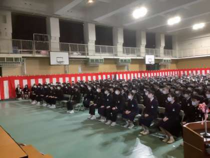 体育館のスクリーンには、3年間の思い出が映し出されています。最後には全員合唱が流れました。素敵な歌声に思わず会場から拍手が沸き起こりました。