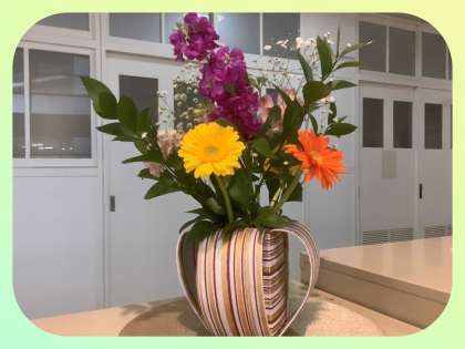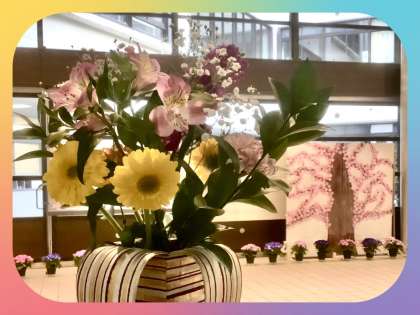 ホール(・ガーベラ・ストック・アルストロメリア・カーネーション・かすみ草)と職員室前(・こでまり・ガーベラ・カーネーション)のお花を生け替えていただきました。いつも東中生のためにありがとうございます。