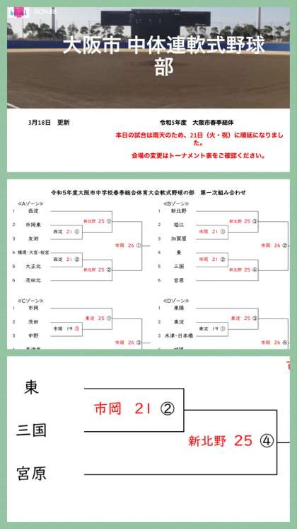 野球部〜大阪市春季総体 21日(火・祝)に順延〜
