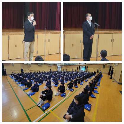 学年ごとに体育館で修了式を行いました。1年の教育課程を終え、皆さんの代表の人に修了証が手渡されました。さぁこれから春休みとなり、新学年を迎えます。心と気持ちを引き締めて頑張りましょう。
