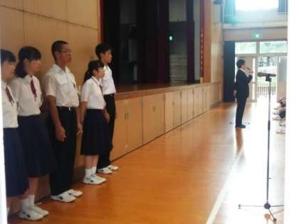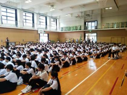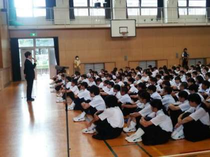 このあと西垣先生から、服装の乱れについてのお話がありました。男子はシャツがきちっと入れられていないこと、女子は靴下をしっかり伸ばしていないことなど、服装を正しく身に着けようとお話しされました。