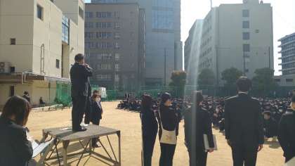 紹介するだけでもかなり時間を要するほどたくさんの方々をお迎えしました。ご紹介の後は、生徒の皆さんから代表して生徒会の生徒に歓迎のあいさつをしてもらいました。
