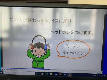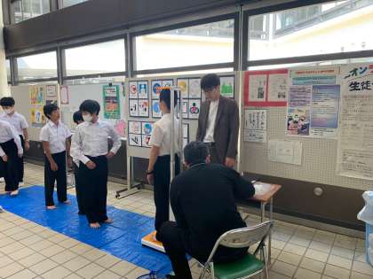 今日は各学年、発育測定、視力検査、聴力検査を行っています。