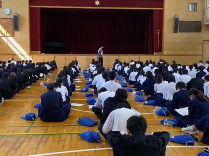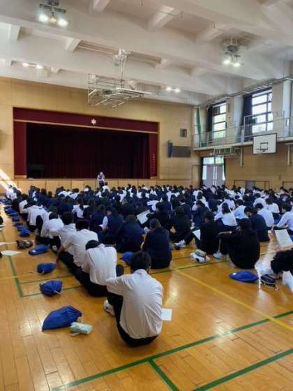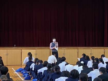 3年生になり、進路についての講話を進路指導担当の先生にしていただきました。早めに自分の目標を定めて、時間を有意義に使いましょう!
