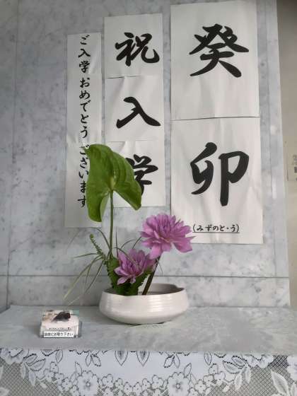 玄関のお花を生け替えていただきました。いつも東中生のためにありがとうございます。今年度もよろしくお願いします。