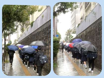 生徒たちは、晴れの日も雨の日も、正門前では、特にマナーを守って登校しています。