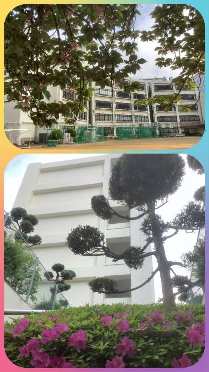 新緑が鮮やかな季節になってきました。校庭の花も八重桜からつつじが咲き誇り出しています。池の鯉も元気に泳いでいます。