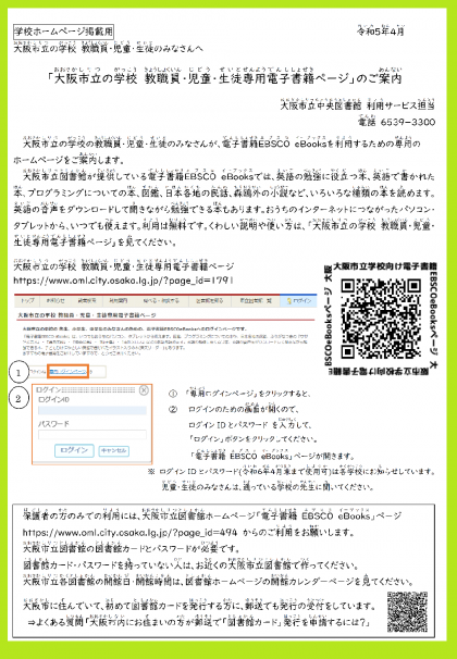 「大阪市立の学校教職員・児童・生徒専用電子書籍ページ」のご案内