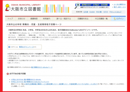 大阪市立の学校の教職員・児童・生徒のみなさんが、電子書籍EBSCO(エブスコ)eBooks(イーブックス)を利用するための専用のホームページをご案内します。