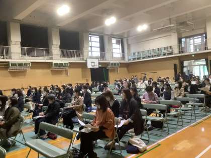 たくさんの保護者の皆さまにご参集いただき、6月に実施する修学旅行の説明会が始まりました。行き先は、金沢・福井方面。目的は「集団行動を通して、規律を守り、自主的に行動できるようにする」「地元の人や地場産業とのふれあいにより、大阪の生活との違いや文化の違いなどを感じ取るとともに、他人を思いやる心や社会生活のルールや基本的モラルを習得する」の2つ。生徒たちは、心に深く残る行事となるよう、準備を進めていきます。保護者の皆さまのご理解とご協力をよろしくお願いします。