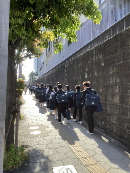 20人以上の人数で、「おはようございます!」とあいさつをすると、みなさんちょっと驚きながらも、あいさつをしていました。