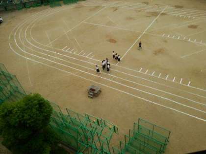 今日も、体育大会実行委員の人たちは体育の先生と一緒に、運動場整備をしてくれています。ありがとうございます。