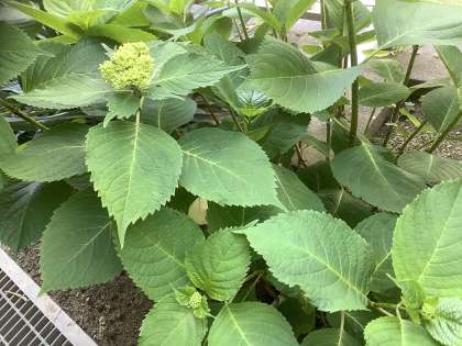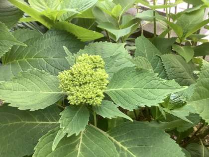 紫陽花は、鮮やかな新緑の葉に守られて、花芽が見えてきました。季節は進んでいます。