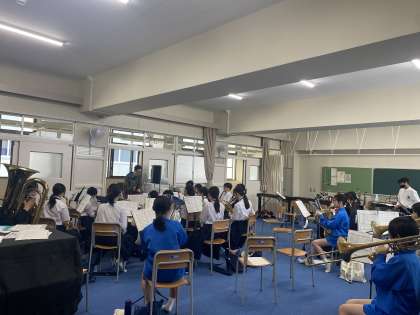 吹奏楽部が、新校舎5階の音楽室で活動しています。
