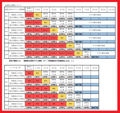 ・「新型コロナ・インフル療養期間早見表」はこちらをクリックしてご参照ください。