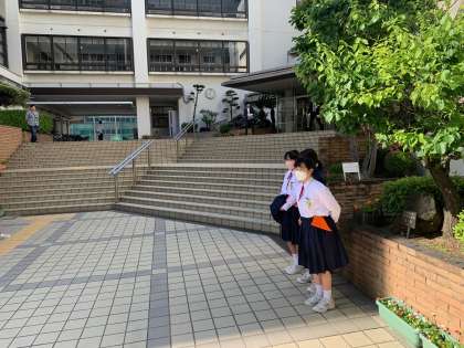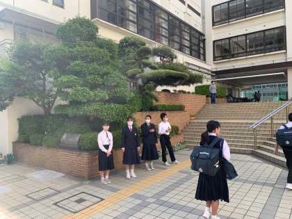 今朝は、生徒会や風紀委員に加えて、茶道部があいさつ運動をしてくれました。