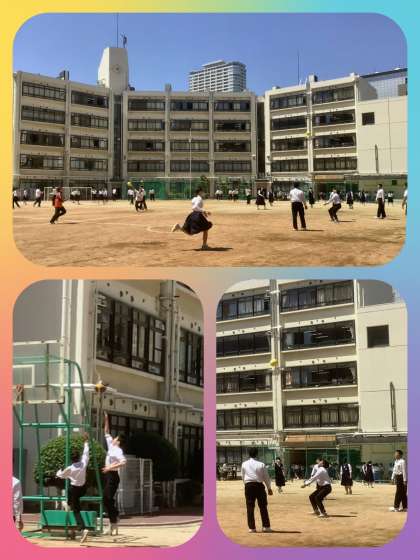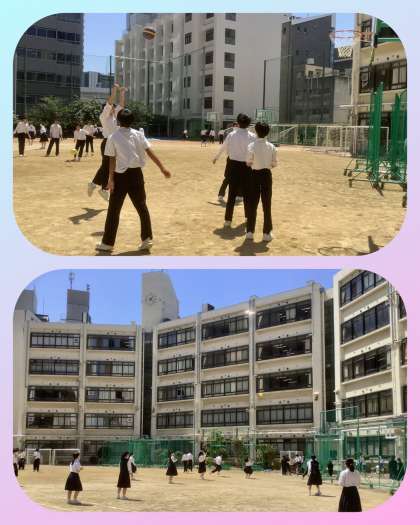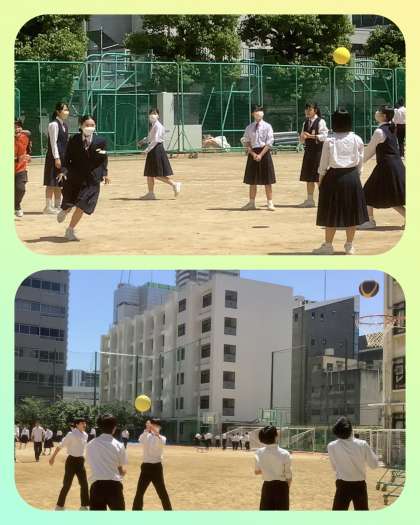 今年度から、全面使えるようになったグランド。そのグランドいっぱいに、生徒たちが、ボール遊びや鬼ごっこに興じています。また、生徒たちに混じって、鬼ごっこをしている先生の姿もありました。予鈴のメロディチャイムが聞こえてくると、一転、体育委員が待っているボールかごにボールを返却します。生徒たちは、勉強も遊びも一生懸命です。