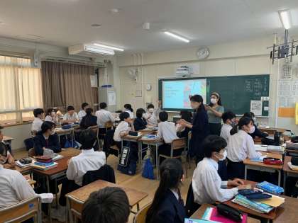 C-NET(大阪市外国語〔英語〕指導員)のルースガジャ先生とのティームティーチング(TT)による授業です。