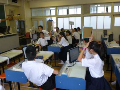 今日の4時間目、英語の小野先生の授業は、英語の質問に対してグループに分かれて答えをあてるというものでした。