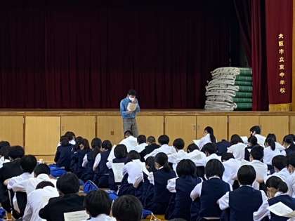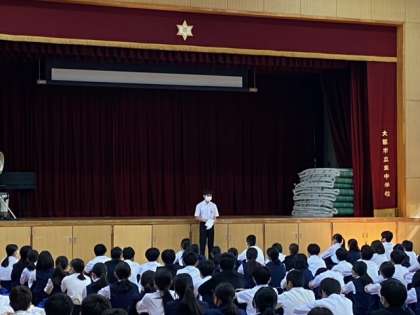 進路指導主事の先生から、中間テストに向けて、受験生としての心構えをお話ししていただきました。