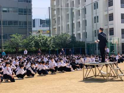 今回は地震を想定した訓練ですが、校長先生からの講話では、生徒の皆さんは、しっかりと顔をあげて、話を聞いていました。能登、千葉、北海道と日本各地で地震が続いています。「訓練は本番のように緊張感を持って、そして本番は訓練を思い出して落ち着いて行動するように」と、お話いただきました。