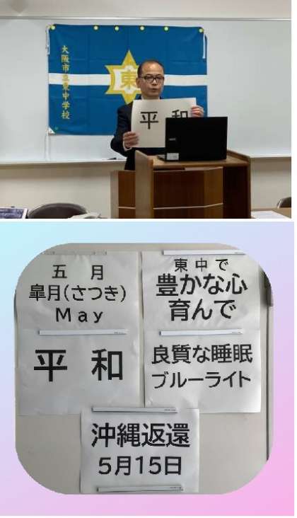 また、今日5月15日は沖縄返還の記念日なので、平和について今一度、考えようという講話をいただきました。