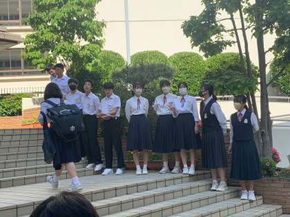 ぐーんと気温があがった朝でした。生徒会と風紀委員があいさつ運動をしてくれました。