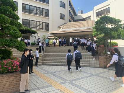 今日も、3年生風紀委員が全員並び「おはようございます」と大きな声であいさつ運動をしてくれました。