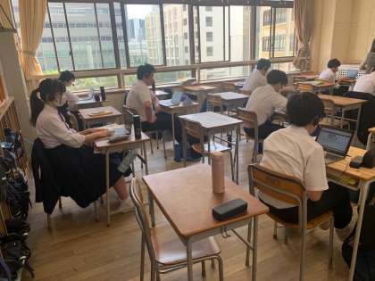 1人一台端末を用いて、ヘッドセッドで回答していきます。ネットワーク環境が改善されたとはいえ課題もあります。