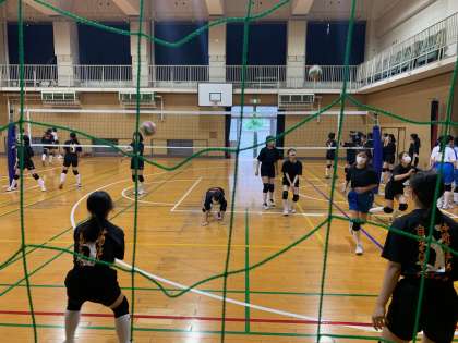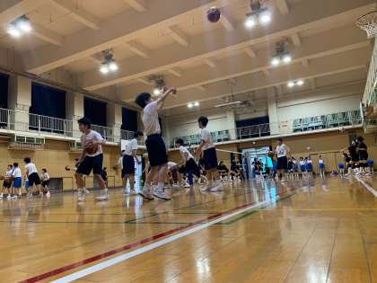 体育館ではバレー部、バスケ部が久しぶりの汗をながさています。