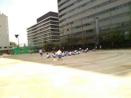 非常に良い天気に恵まれ、今日も体育大会実行委員のおかげもあり、3年生は全員リレーの練習をしています。