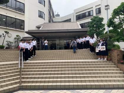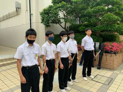 剣道部のあいさつ運動です。