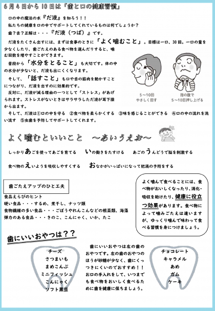 裏面では、「歯と口の健康習慣」に関する記事が掲載されています。「歯と口の健康週間(6月4日〜10日)」を機会に、「歯と口の健康な習慣」を見直しましょう!
