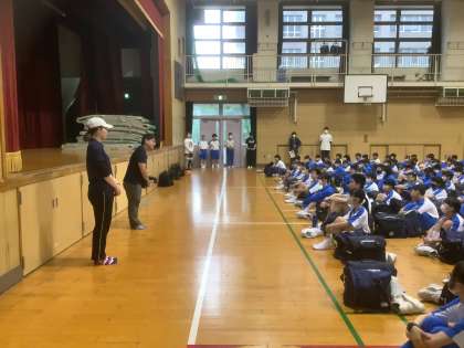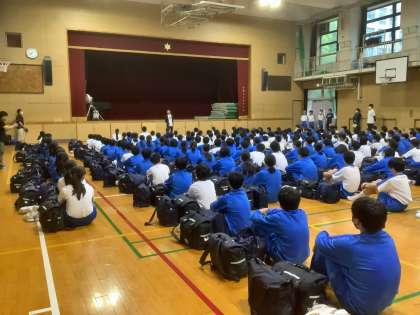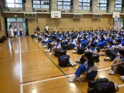 引率していただく、学年主任の先生、副校長先生のご挨拶に続いて、写真屋さん、看護師さんの紹介、生徒代表によるご挨拶がありました。