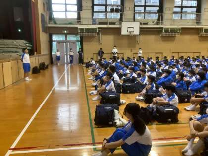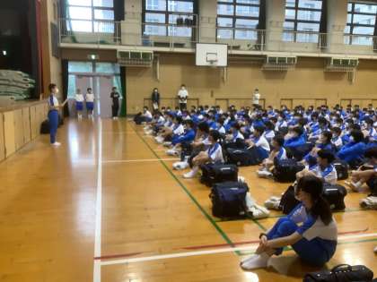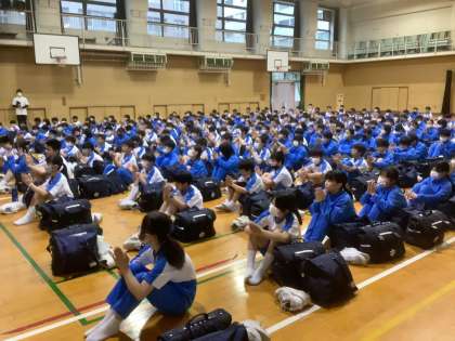 生徒代表の大役を務めた2人は、挨拶、諸注意をしっかり伝え、38期生の皆さんは、それに応え、しっかり受け止めています。