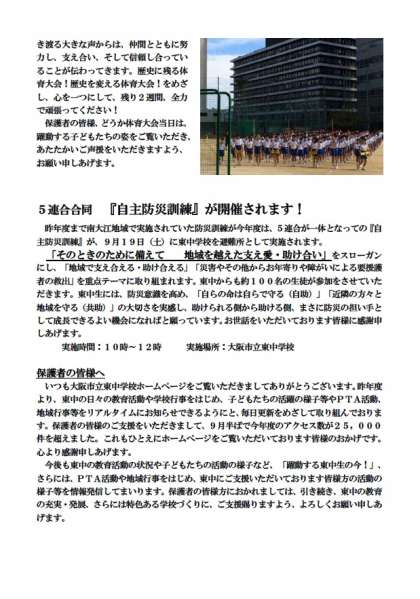 トップページ右側の「配布文書」−「東中だより」に掲載しております。