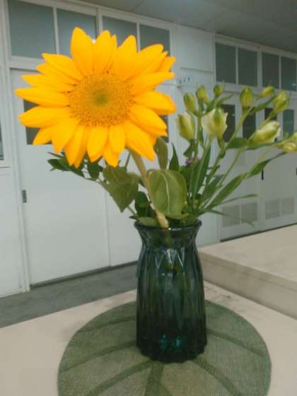 玄関ロビーには「ひまわり・アリストメリア・萩」を、職員室前には「萩とあじさい」を生けていただきました。いつも東中生のためにありがとうございます。