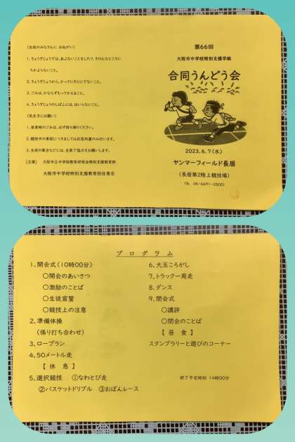 本日、第66回大阪市中学校特別支援学級「合同うんどう会」が、ヤンマーフィールド長居で行い行われます。歴史と伝統のある大会です。コロナ禍の制限が解除され、参加者の笑顔が広がり、心に残る大会になりますように!