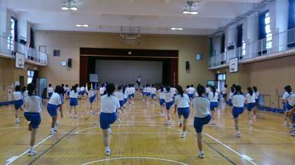 運動場での体育大会の練習ができませんが、東中生たちは、体育館でも変わらず、みんなで全力で取り組んでいます!