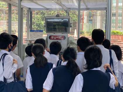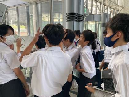大阪市立科学館では、みんな「ロボットアーム」に興味津々です。施設の方から「皆さん礼儀正しく、しっかりしてますね」とお褒めの言葉をいただきました。