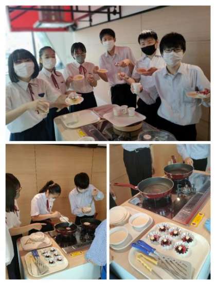 ガスコンロ機器を実際に使って、パンケーキの調理体験も行いました。班で協力して調理ができ、美味しくいただきました。