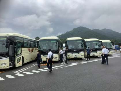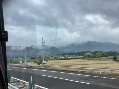 9時30分。心配された雨は上がり、バスは予定通り進んでいます。多賀SAで休憩です。