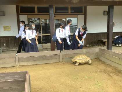 大きな亀ともふれあい体験です。
