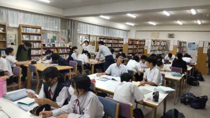 来週の期末テストに向けて、学習会が始まりました。元気アップの取り組みで、放課後の図書室で自主学習をしています。